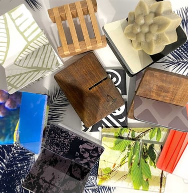 Porte-savons artisanaux, durables et uniques, fabriqués à partir de matières issues de l'économie circulaire.